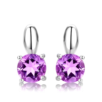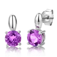 925 Sterling Silver round shape Amethyst Stud Earrings